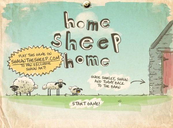 Home Sheep Home(小綿羊回家記),這款小遊戲的故事來自於很知名的黏土動畫卡通「笑笑羊(Shaun the sheep)」。遊戲的主角是三隻體型由大到小的綿羊(Shirley 雪莉、Shaun 肖恩、Timmy 蒂咪),他們正在返回居住的農莊,但是一路上充滿了各種刁難的關卡挑戰,三隻小羊必須融會物理學知識、聰明的頭腦和靈巧的反應,善用「環境物件」和「自己的體型」,才能通過重重難關回到自己的家。